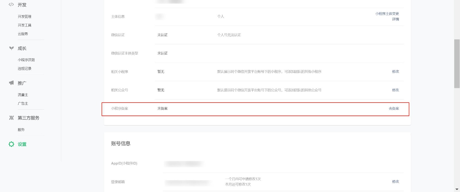 變更備案:更新已經(jīng)完成備案的主體、小程序信息