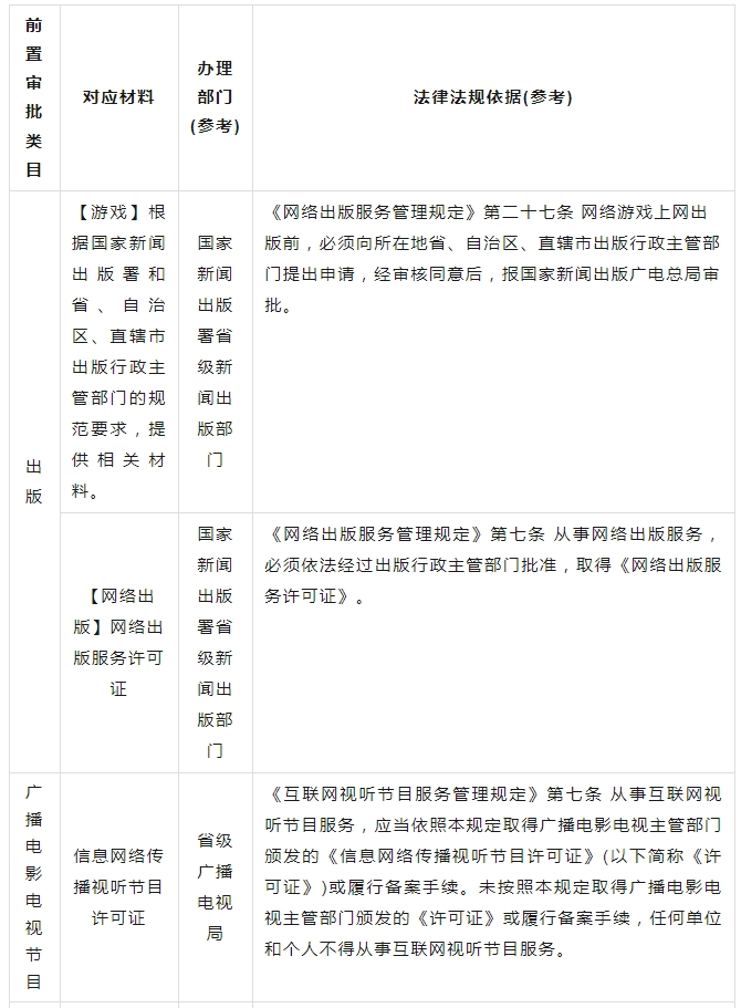 如你的小程序從事新聞、出版、藥品和醫療器械、網(wǎng)約車(chē)等需須經(jīng)有關(guān)主管部門(mén)審核同意的互聯(lián)網(wǎng)信息服務(wù),在履行備案手續時(shí),應提供業(yè)務(wù)對應前置審批文件。相關(guān)類(lèi)目參考如下: