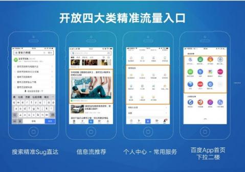 其一,截至目前,百度四大超級入口中,搜索入口包括尋址卡、精準sug直達、精準語(yǔ)音直達、熊掌號掛載、自然結果、阿拉丁等,信息流入口包括信息流直接推薦、百家號作者在文章頁(yè)主動(dòng)掛載以及文章落地頁(yè)的自動(dòng)掛載等,固定入口及回訪(fǎng)入口包括百度App下拉二樓、個(gè)人中心頁(yè)等。