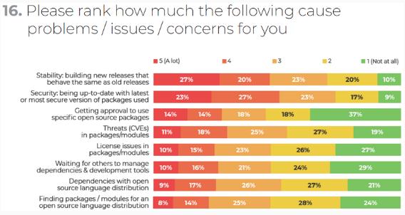 既然這次調查的目的主要是了解開(kāi)發(fā)者在基于“開(kāi)源”進(jìn)行開(kāi)發(fā)時(shí)所面臨的痛點(diǎn)。下面我們就來(lái)看看這些“痛點(diǎn)”主要是什么內容。