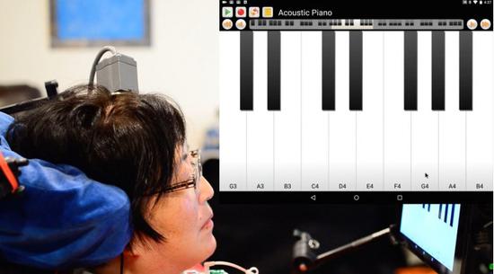 通過(guò)這一套系統,志愿者可以展開(kāi)一系列活動(dòng),諸如網(wǎng)購、在 YouTube 上搜索視頻、滾動(dòng)新聞聚合器、瀏覽流媒體服務(wù)上的音樂(lè )選擇、寫(xiě)郵件以及聊天等--所有這一切都是通過(guò)思維完成。其中一位女性志愿者甚至還能在數字鋼琴界面上演奏貝多芬的《歡樂(lè )頌》。