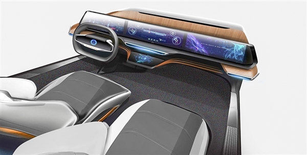 據悉這種智能駕駛艙沒(méi)有配備任何物理按鍵,中控臺上有一體式超大屏橫貫,內含左中右三塊屏幕,分別為液晶儀表屏、中控顯示屏與副駕駛娛樂(lè )屏,同時(shí)在超大中控屏中下方還有一塊車(chē)輛信息顯示屏,果真找不到一個(gè)物理按鍵。