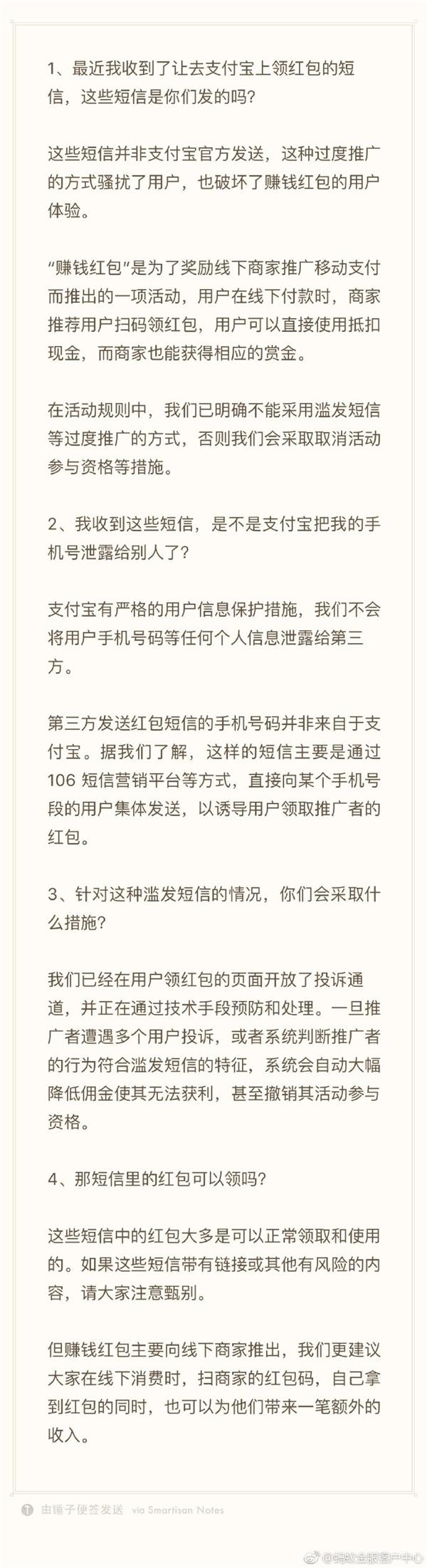 這些短信并非支付寶官方發(fā)送,這種過(guò)度推廣的方式騷擾了用戶(hù),也破壞了賺錢(qián)紅包的用戶(hù)體驗。