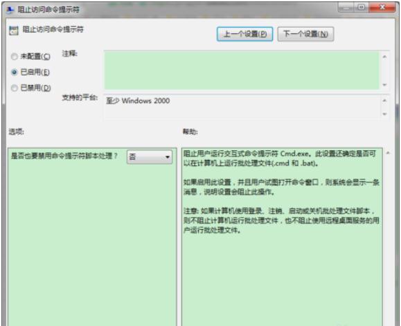 雙擊“阻止訪(fǎng)問(wèn)命令提示符”配置項,打開(kāi)配置對話(huà)框;
