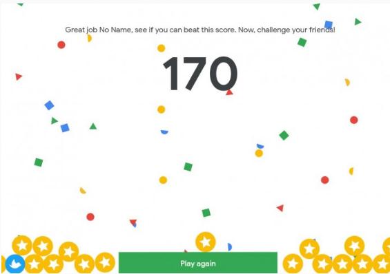例如小編在游戲時(shí)候遇到的問(wèn)題是:“2018 年搜索次數最多的繪畫(huà)是什么?”以及“美國哪個(gè)州搜索‘mega millions’最多?”,玩家只有 10 秒的時(shí)間來(lái)回答每個(gè)問(wèn)題,一旦做錯三道題目這個(gè)比賽就會(huì )結束,之后就會(huì )公布的得分。