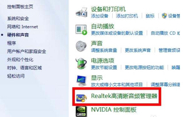 彈出頁(yè)面如圖所示,然后選擇“Realtek高清晰音頻管理器”