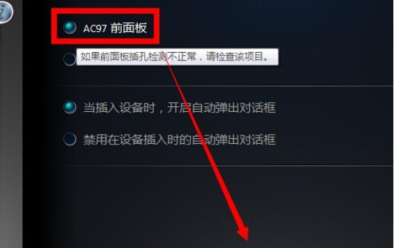 在彈出的面板里我們點(diǎn)擊“AC97前面板”,重新裝載音頻裝置,
