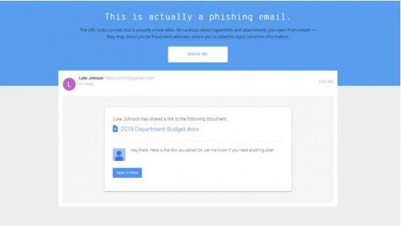 包含八個(gè)問(wèn)題的測驗首先要求用戶(hù)想出一個(gè)名字和一個(gè)電子郵件地址 - 無(wú)論是真實(shí)的還是假的 - 為其增添一絲真實(shí)感。完成后,用戶(hù)將接受一系列場(chǎng)景,向他們顯示各種電子郵件及其包含的鏈接。最終,用戶(hù)需要檢查消息,以尋找他們正在查看的可能是網(wǎng)絡(luò )釣魚(yú)嘗試的線(xiàn)索。