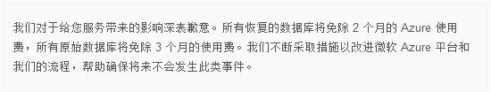 作為補償,微軟表示會(huì )免費提供數月的數據庫服務(wù):