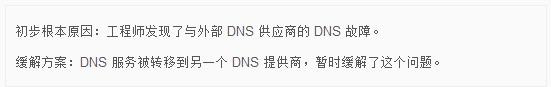 根據微軟當時(shí)的Azure狀態(tài)頁(yè)面,這個(gè)問(wèn)題反過(guò)來(lái)又歸結為DNS中斷故障: