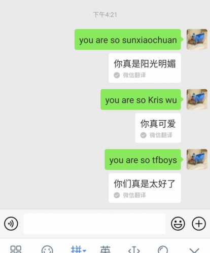具體來(lái)看,當網(wǎng)友輸入 youaresoKriswu 后,得到的翻譯結果為你真可愛(ài),而當網(wǎng)友輸入 you aresotfboys 時(shí),得到的結果為你們真是太好了。