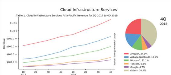 2017Q1~2018Q4 亞太區云基礎設施服務(wù)市場(chǎng)份額