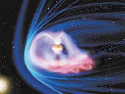對行星環(huán)境來(lái)說(shuō),磁場(chǎng)的作用非同小可。“磁場(chǎng)能夠避免太陽(yáng)風(fēng)直接打到行星表面,磁場(chǎng)能‘鎖住’大氣和水分。”宗秋剛說(shuō),通過(guò)研究磁場(chǎng)還能推斷行星演化的歷史。這是因為磁場(chǎng)周?chē)写鸥芯€(xiàn),帶電的巖漿噴出時(shí)會(huì )向著(zhù)磁場(chǎng)的方向排列,當巖漿冷卻、凝固就會(huì )將當時(shí)的磁場(chǎng)位形保存下來(lái)。