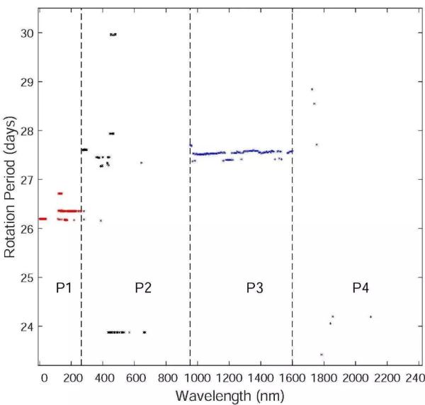那么,這些不同的光它們轉的速度都一樣么?不一樣。近期,太陽(yáng)物理學(xué)家研究發(fā)現,遠紫外太陽(yáng)光比近紅外太陽(yáng)光轉得快。云南天文臺撫仙湖太陽(yáng)觀(guān)測基地科研人員通過(guò)對不同顏色的太陽(yáng)光進(jìn)行周期分析發(fā)現,遠紫外的太陽(yáng)光自轉周期約為 26.3±0.13 天,近紅外的太陽(yáng)光自轉周期約為 27.5±0.06 天。