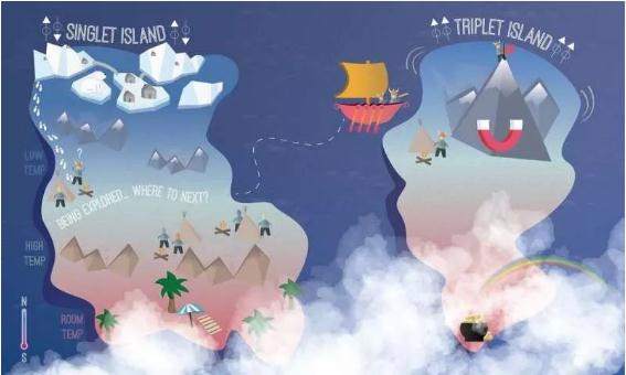 在物理學(xué)的海洋中,有一座奇異的島嶼,名為“單線(xiàn)態(tài)島”。這座島嶼的溫度由北向南越來(lái)越暖。在最北部的極寒地區,溫度低于-271.5 攝氏度(或者說(shuō) 1.6 開(kāi)爾文),那里居住著(zhù)一些具有神奇能力的居民——“超導人”,他們非常畏懼高溫,一旦溫度過(guò)高,超能力便會(huì )失效。偶爾,你能在高于 30 開(kāi)爾文的中部島嶼上發(fā)現他們的蹤跡,但南部對他們來(lái)說(shuō)似乎實(shí)在太熱了。
