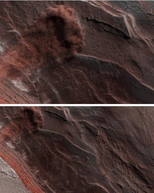 這并不是美國宇航局第一次在紅色星球上捕獲雪崩,但這次塵土飛揚的圖像是最清晰的一次。
