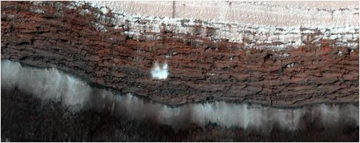 早在 2015 年 10 月,美國國家航空航天局就在一個(gè)巨大的巖石懸崖中間分享了雪崩的圖像 - 與最新的圖像不同,當時(shí)的雪崩(下圖)是白色的,就像我們在地球上熟悉的那樣。