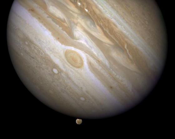 星正在吞噬其最大的衛星木衛三。與太陽(yáng)系中所有其他行星不同的是,木星具有如此巨大的引力,以至于經(jīng)過(guò)它附近的小行星和彗星都很可能被它的引力勢阱所吸引,并與我們太陽(yáng)系中最大的氣體巨星相撞