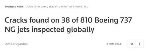 10月9日,在美國聯(lián)邦航空管理局(FAA)下令對737NG進(jìn)行緊急檢查后,美西南航空和巴西戈爾航空至少停飛了13架該機型飛機。