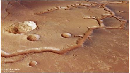 這些來(lái)自 ESA“火星快車(chē)”號探測器的新圖像中顯示的火星區域位于該行星赤道的南側。通過(guò)研究我們可以得知,這里的地貌是由流水和隕石撞擊混合而成的。