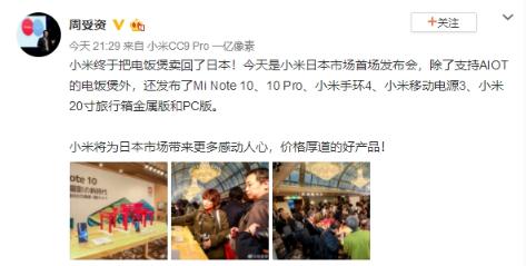 12 月 9 日,小米正式進(jìn)入日本市場(chǎng),一口氣發(fā)布了五個(gè)品類(lèi)六款產(chǎn)品,其中主打明星自然是小米 Note 10(小米 CC9 Pro),但是令小米最自豪的,其實(shí)是那個(gè)不起眼的電飯煲。