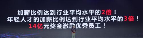 與此同時(shí),他還宣布京東零售 2020 年的加薪資源還將持續高投入。加薪比例將達到行業(yè)平均水平的 2 倍,其中,年輕人才的加薪比例更將達到行業(yè) 3 倍。此外,還將投入 14 億元獎金用于激勵優(yōu)秀員工。