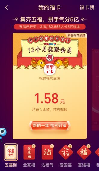 1月24日晚間消息,除夕之夜一年一度的支付寶集五?;顒?dòng)今晚22:18分準時(shí)開(kāi)獎。