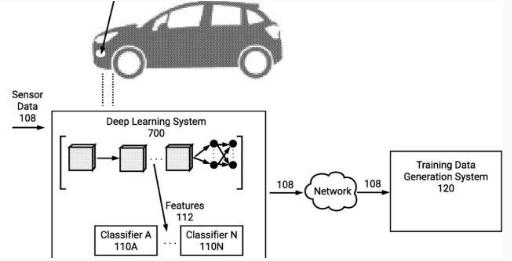 因此,卡帕西解釋了他的專(zhuān)利方法,在傳輸之前就對源數據進(jìn)行分類(lèi):“示例方法包括接收傳感器并將神經(jīng)網(wǎng)絡(luò )應用于傳感器數據。將觸發(fā)器分類(lèi)器應用于神經(jīng)網(wǎng)絡(luò )的中間結果,以確定傳感器數據的分類(lèi)器評分。根據至少部分分類(lèi)器得分,決定是否通過(guò)計算機網(wǎng)絡(luò )傳輸至少部分傳感器數據。一旦確定為陽(yáng)性,傳感器數據就會(huì )被傳輸并用于生成訓練數據。”