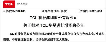 3 月 31 日消息,深交所上市公司 TCL 科技昨晚發(fā)布公告稱(chēng),擬向 TCL 華星增資 50 億元,持股比例提升至 90.72%。