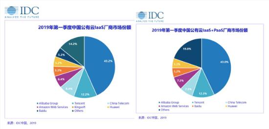 在 IDC 報告中,2019 上半年中國公有云的 IaaS(基礎設施即服務(wù))的市場(chǎng)份額見(jiàn)下圖: