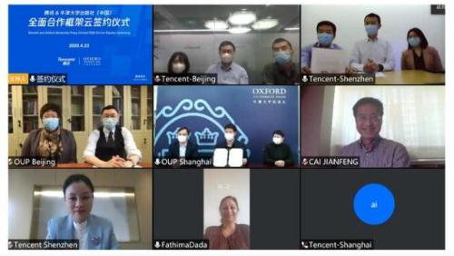 此次簽約儀式,通過(guò)騰訊會(huì )議舉行,騰訊副總裁鐘翔平、騰訊智能平臺產(chǎn)品副總裁李學(xué)朝、騰訊教育副總裁付曼青、牛津大學(xué)出版社教育事業(yè)部董事總經(jīng)理 Fathima Dada ,牛津大學(xué)出版社中國區董事總經(jīng)理丁銳等雙方代表在線(xiàn)簽署合作協(xié)議。