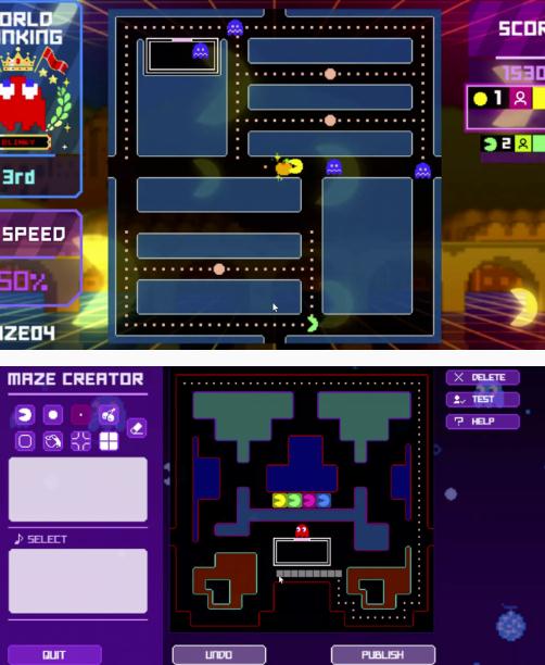 《吃豆人直播室》提供經(jīng)典模式,玩家可以在其中玩到原版的吃豆人。但也會(huì )有其他模式。在 "無(wú)盡模式 "中,最多四人可以一起玩,嘗試攀登全球排行榜,爭奪高分,但每個(gè)關(guān)卡只有一條命。在工作室模式中,你可以制作和分享迷宮,在下面的截圖中可以看到游戲的迷宮編輯器。而在選擇模式中,最多四名玩家可以嘗試在社區制作的迷宮中獲得高分。