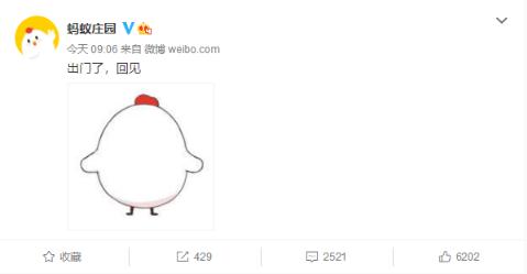 與此同時(shí),螞蟻莊園官方微博寫(xiě)了句“出門(mén)了,回見(jiàn)。”這次小雞的消失引發(fā)了全網(wǎng)集體找尋,很多網(wǎng)友在社交平臺發(fā)帖詢(xún)問(wèn)“小雞去哪了”。就連螞蟻森林也在微博@螞蟻莊園,是不是把雞給燉了。