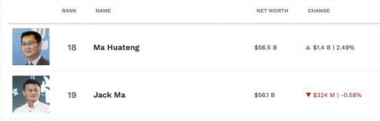 隨著(zhù)騰訊股價(jià)的增長(cháng),騰訊創(chuàng )始人馬化騰的身家也水漲船高。根據福布斯實(shí)時(shí)富豪榜,馬化騰的個(gè)人財富目前增至 565 億美元,超越馬云的 561 億美元,成為中國首富,全球排名 18。