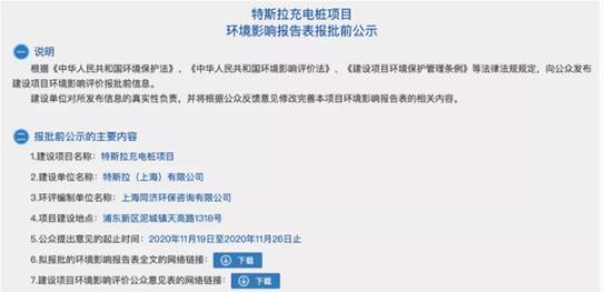 日前,我們于網(wǎng)絡(luò )渠道獲悉,特斯拉充電樁項目環(huán)境影響報告表處于報批前公示中,公示期到 11 月 26 日結束。該報告顯示,特斯拉擬斥資 4200 萬(wàn)元在上海浦東新區建設新工廠(chǎng)。