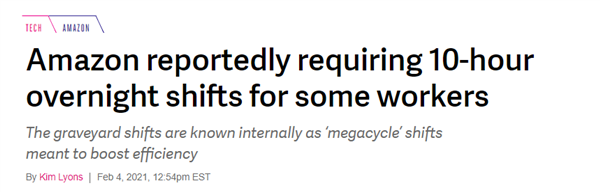 也就是說(shuō),亞馬遜的要求是白天工作時(shí)間可以縮短,但晚上熬夜加班的時(shí)長(cháng)要更長(cháng)。