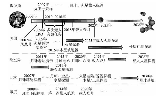 2010 年前后各國載人登月規劃(吹牛)對比圖。摘自參考內容1