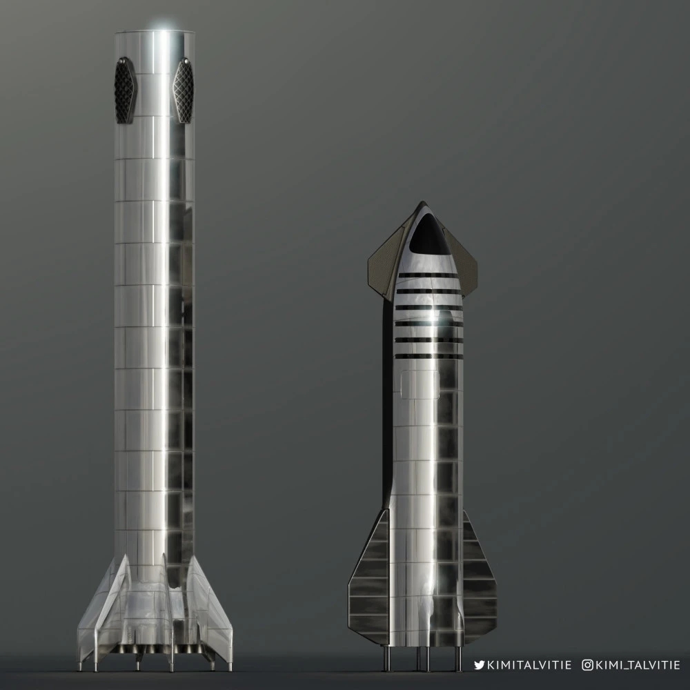 目前,我們在提到星艦這個(gè)稱(chēng)呼時(shí),特指第二級的飛船部分,就是目前正在測試的部分。飛船部分高50米,直徑9米,重約1300噸,安裝有3臺真空版猛禽發(fā)動(dòng)機和3臺海平面版發(fā)動(dòng)機。托舉飛船的是一枚更加強大的超重火箭(Super Heavy),這種火箭高72米,直徑9米,重達3500噸,安裝有28臺猛禽發(fā)動(dòng)機。飛船部分加上超重火箭后的總高度達120米,近地軌道運載能力超過(guò)100噸,一次性可將100名乘客送上太空。