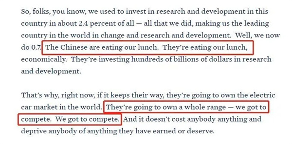 當地時(shí)間5月6日,美國總統拜登向聽(tīng)眾大講特講他的“美國就業(yè)方案”。拜登稱(chēng),中國人正在搶走我們的飯碗。