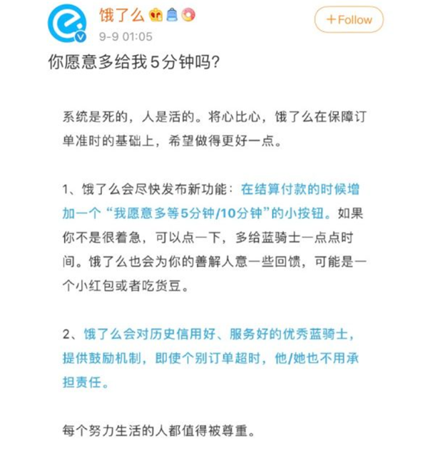 人物的那篇文章刷屏的時(shí)候,餓了么還 “ 別出心裁的 ” 出了一個(gè) “ 你愿意給我 5 分鐘嗎? ” 的活動(dòng)。