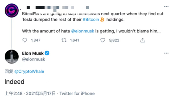 部分市場(chǎng)人士將這一言論解讀為:馬斯克在暗示特斯拉可能已經(jīng)全部拋售或部分賣(mài)出了其比特幣持倉。