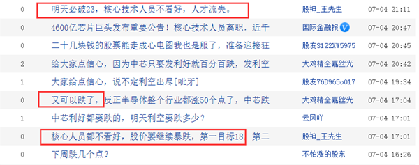 但是網(wǎng)友們可不這么認為,股吧里的股民十分悲觀(guān),紛紛認為,核心技術(shù)人員都不看好,周一開(kāi)盤(pán)暴跌。