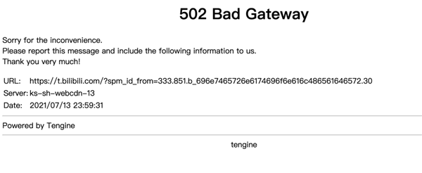 7月13日晚間,B站出現訪(fǎng)問(wèn)故障,“B站崩了”一度登上微博熱搜。除了網(wǎng)站和移動(dòng)端顯示加載錯誤之外,B站出品的輕視頻、剪輯軟件必箭等均無(wú)法打開(kāi),顯示頁(yè)面加載出錯。
