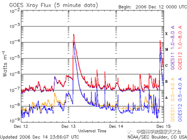 早期對太陽(yáng)耀斑的知識主要來(lái)源于地面望遠鏡光學(xué)波段的觀(guān)測,但是隨著(zhù)觀(guān)測儀器的不斷進(jìn)步,現在人們已經(jīng)用高時(shí)間分辨率,高空間分辨率,全波段高能譜分辨率,抵近的觀(guān)測設備對耀斑進(jìn)行非常細致的觀(guān)測[4,5]。尤其是對耀斑最敏感的軟X射線(xiàn)波段,GOES衛星在幾個(gè)太陽(yáng)活動(dòng)周內積累了大量的耀斑樣本,為耀斑的研究提供了方便。一個(gè)經(jīng)典的太陽(yáng)耀斑輪廓見(jiàn)圖2。