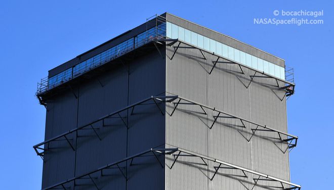 最終,在 2020 年 7 月,SpaceX 開(kāi)始建造更大的“高艙”,它最終高約 81 米,直徑 25 米,足以容納該公司現有獵鷹 9 號或獵鷹重型火箭的組裝,甚至還有多余的空間。當然,更重要的是,這種高艙可以自始至終支持超重型助推器組裝,這讓 SpaceX 團隊有了個(gè)遮蔽的地方,可以建造歷史上最大的火箭助推器。