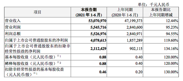 8月27日晚間,中興通訊發(fā)布2021年半年度報告。報告顯示,中興通訊上半年實(shí)現營(yíng)業(yè)收入530.7億元,同比增長(cháng)12.4%;凈利潤為40.8億元,同比增長(cháng)119.6%;扣除非經(jīng)常性損益的凈利潤為21.1億元,同比增長(cháng)134.2%。