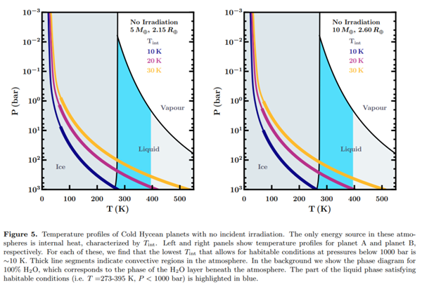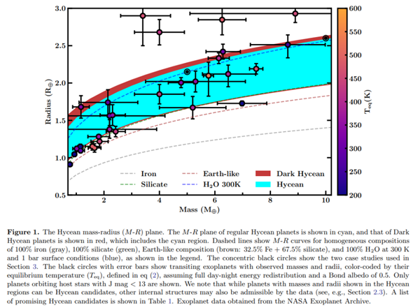 此項工作中,研究團隊專(zhuān)注于研究富含氫氣的大氣層下存在大海洋(水的質(zhì)量分數高達 90%),并具有宜居條件的行星,他們將其稱(chēng)為“Hycean”星球。Hycean行星可以比地球大2.6 倍,擁有近200攝氏度的氣溫,但其海洋環(huán)境可能類(lèi)似于地球海洋中微生物生存的條件。