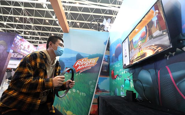 在第三屆國際動(dòng)漫游戲產(chǎn)業(yè)博覽會(huì )上,觀(guān)眾在體驗動(dòng)漫游戲。新華社資料