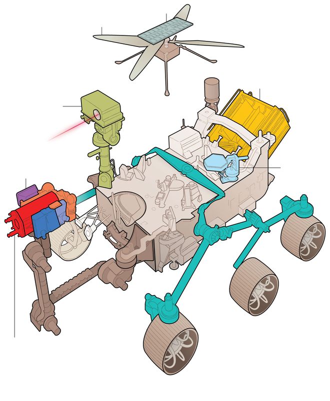 毅力號火星車(chē)將繼續探索 45 公里寬的杰洛隕石坑,沿著(zhù)位于隕石坑邊緣的古老干涸三角洲一路前行。與火星車(chē)同行的還有一架名為靈巧號的火星直升機,它的存在原本是為了測試人造飛行器在火星稀薄空氣中飛行的能力。