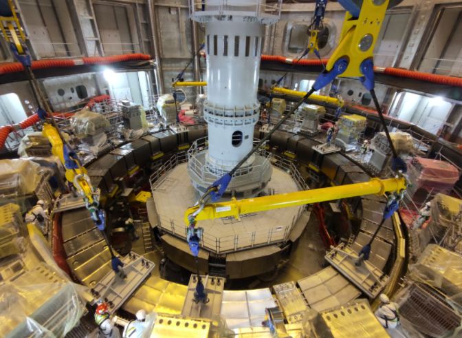當地時(shí)間 9 月 16 日,在法國南部卡達拉舍,“人造太陽(yáng)”國際熱核聚變實(shí)驗堆(ITER)托卡馬克裝置的最后一個(gè)下部主要磁體部件——極向場(chǎng)超導線(xiàn)圈 PF5 成功落位,標志著(zhù) ITER 項目主機安裝第一階段最后的里程碑完成,為第二階段真空室安裝創(chuàng )造了關(guān)鍵條件,這是由中核集團牽頭組成的中法聯(lián)合體在法國 ITER 現場(chǎng)啃下的又一塊“硬骨頭”,有力推進(jìn)了 ITER 項目進(jìn)展。